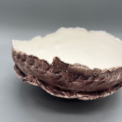 Je dois vous dire que la fonction unique d’un objet pose une limite que j’ai choisi de contourner. Je donne un bord au vide, et c’est à partir de ce geste que la forme naît. Je ne visualise pas un modèle donné pour le répéter à l’infini, ce sont mes mains qui me conduisent intuitivement vers une forme unique pour chaque pièce. Comme une balade, la matière me guide. La porcelaine s’y prête bien, elle a toujours son mot à dire et l’élaboration d’une pièce est un véritable dialogue, un travail en duo.