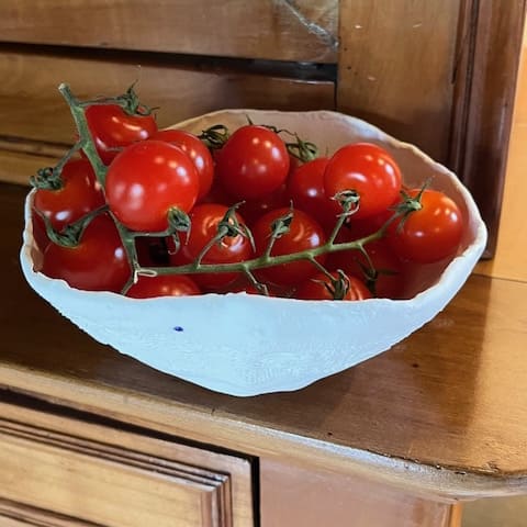 Je dois vous dire que la fonction unique d’un objet pose une limite que j’ai choisi de contourner. Je donne un bord au vide, et c’est à partir de ce geste que la forme naît. Je ne visualise pas un modèle donné pour le répéter à l’infini, ce sont mes mains qui me conduisent intuitivement vers une forme unique pour chaque pièce. Comme une balade, la matière me guide. La porcelaine s’y prête bien, elle a toujours son mot à dire et l’élaboration d’une pièce est un véritable dialogue, un travail en duo.