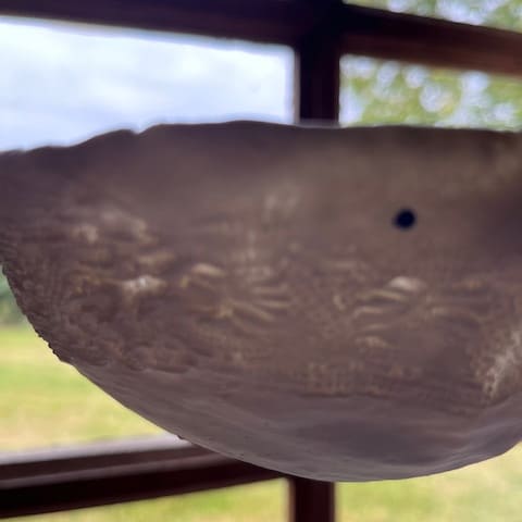 Cette pièce est fabriquée avec un mélange équilibré de porcelaine et de papier. Le papier brûle à la